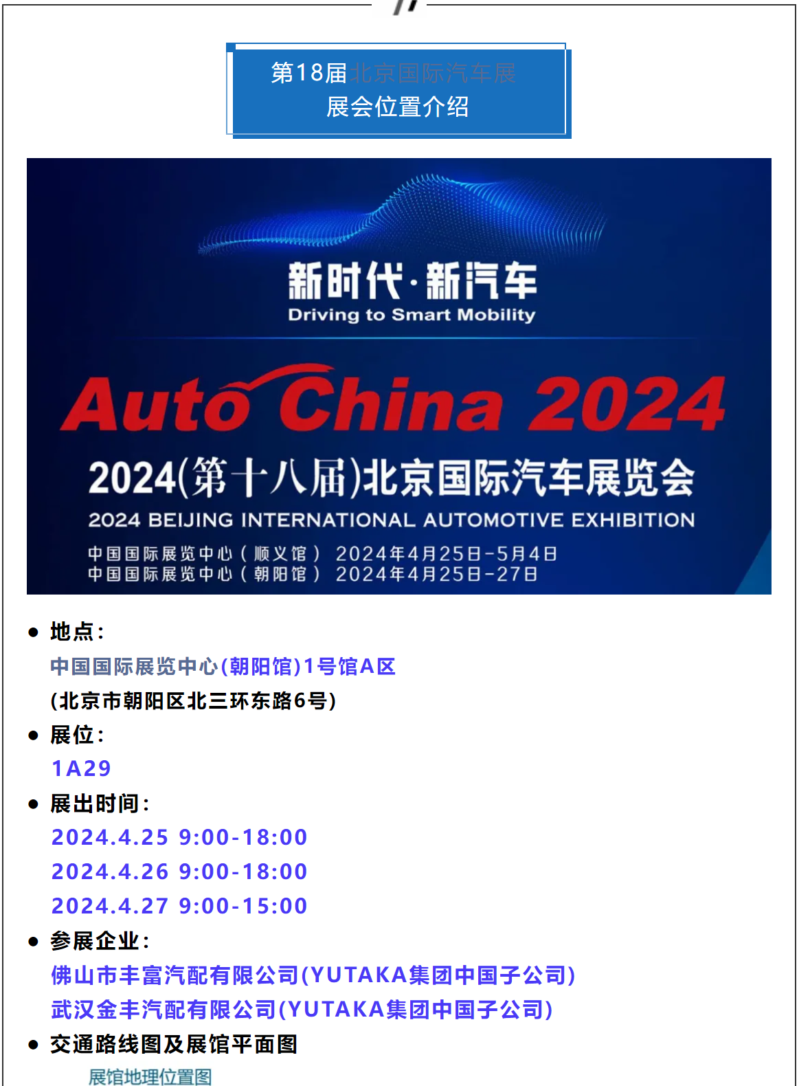 新時代?新汽車 | 武漢金豐/佛山豐富(YUTAKA集團中國子公司)與您相聚2024年北京國際車展